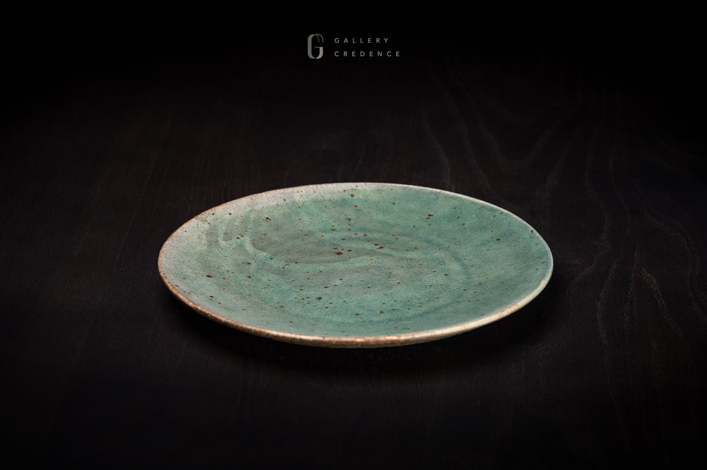 Green Crackle Glaze Plate by Shinpei Mawatari 馬渡新平